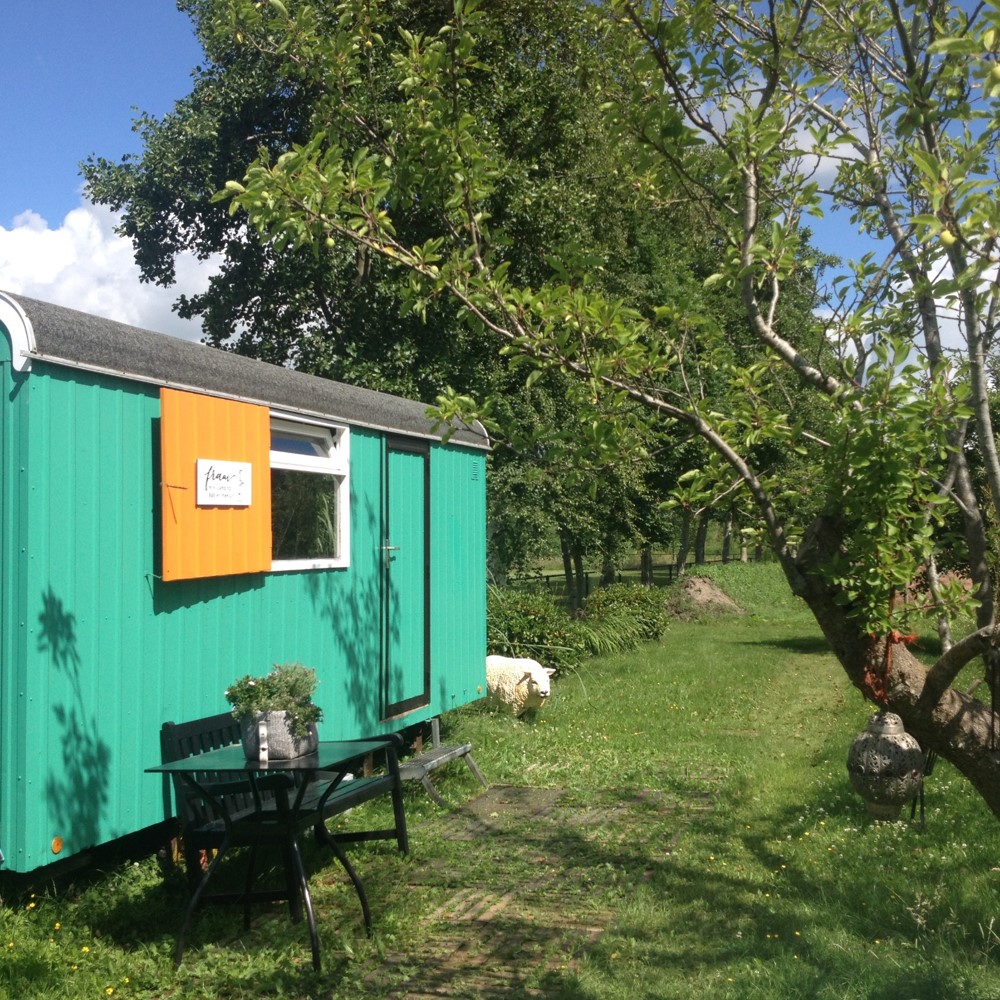 Fraai offers a beautiful Pipowag for rent, located between the plum tree and the apple tree. At the mini camping you can go with your tent or rent a tent with a bed in it. With an overnight stay you will receive free tickets for the open swimming pool across the street. You can also book a tent & breakfast, then have breakfast in our cozy teahouse.